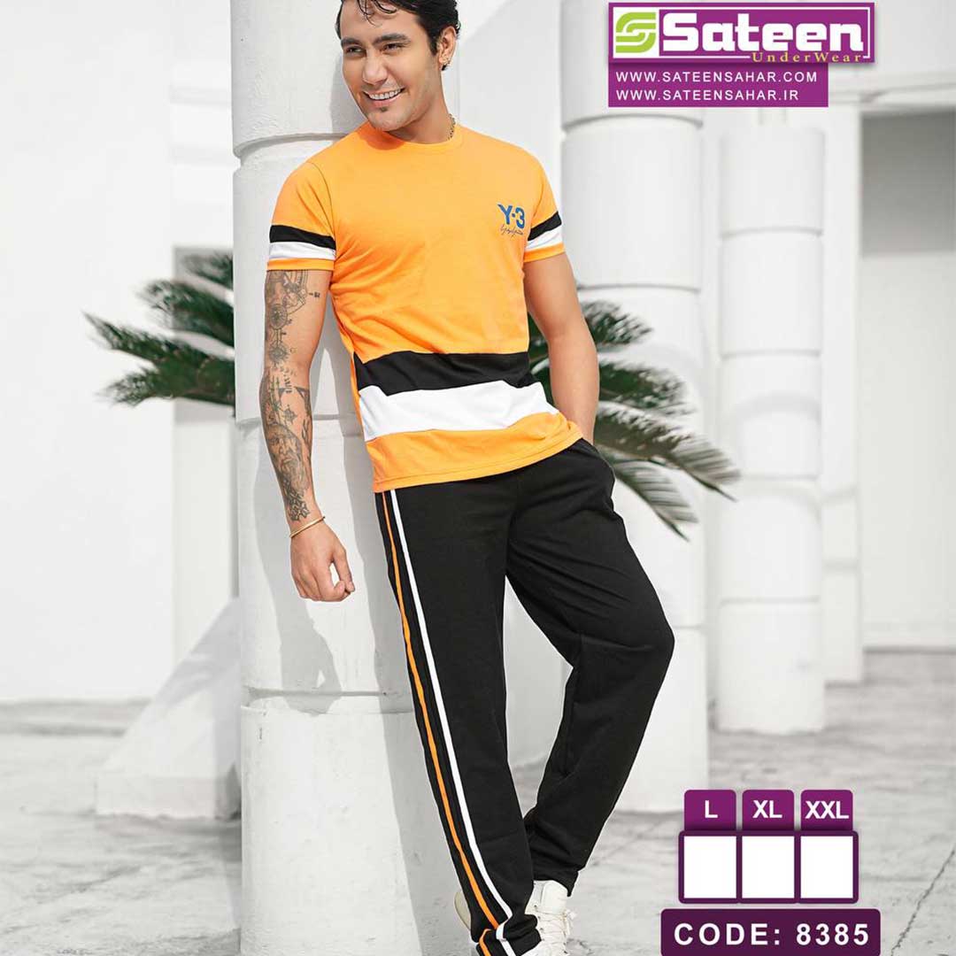 👕 ست تیشرت و شلوار مردانه Y3 کد 8385 | رنگ نارنجی پر انرژی برای روزهای پر جنب و جوش